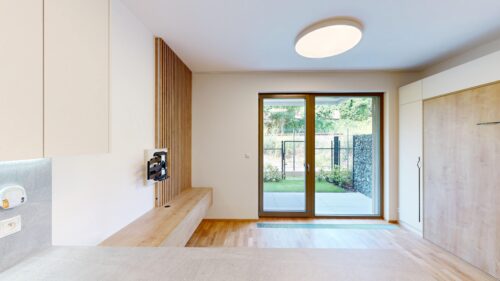 Nabízíme k pronájmu byt 1+kk o rozloze 29 m², předzahrádka o rozloze 13,9m². Byt je situovaný v příjemném prostředí novostavby a nachází v 1.NP. Dispozice zahrnuje: Vstupní chodbu s vestavěnou skříní a botníkem. Koupelnu se sprchovým koutem a WC s bidetovou sprškou, kombinovaná pračka se sušičkou . Obývací pokoj s vybavenou kuchyní (lednice s mrazákem, myčka, trouba, indukční deska, digestoř), televizní stěnou a vestavěnou rozkládací postelí. Optický internet v ceně nájmu. Díky bezbariérovému vstupu a výtahu je dům přístupný pro všechny. Byt se nachází v bytovém domě Waltrovka - Pod Vidoulí. 200 metrů od Walterovo náměstí.