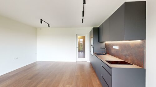 Nabízíme k pronájmu byt dispozičně řešen jako 1+kk o rozloze 32,8 m², situovaný v příjemném prostředí novostavby. Byt se nachází ve 4.NP a jeho dispozice zahrnuje: vstupní chodbu s vestavěnou skříní, obývací pokoj s vybavenou kuchyní (lednice s mrazákem, myčka, trouba, indukční deska, digestoř), ložnici, koupelnu se sprchovým koutem a WC. K bytu náleží rovněž lodžie. Díky bezbariérovému vstupu a výtahu je dům přístupný pro všechny.