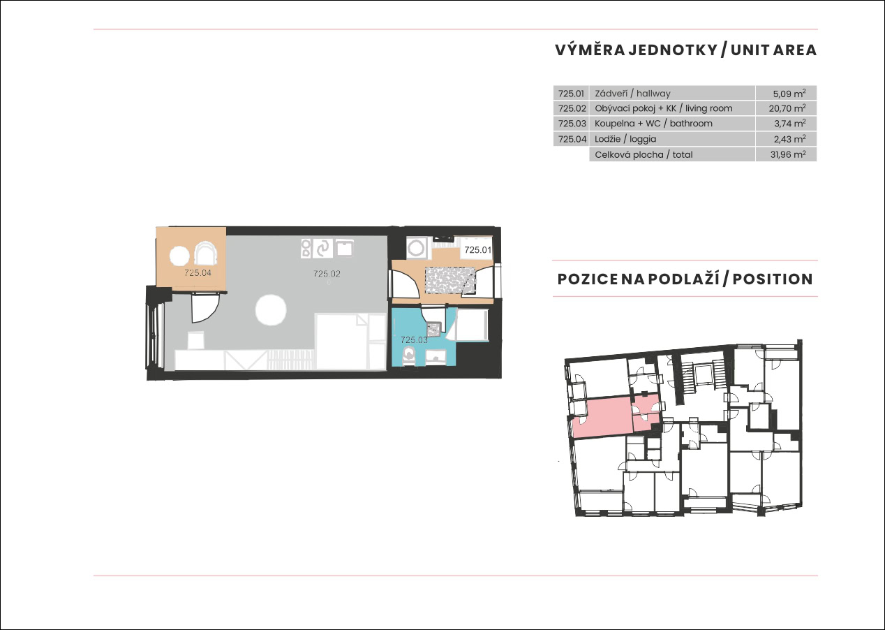Nabízíme k pronájmu byt dispozičně řešen jako 1+kk o rozloze 29,6 m², situovaný v příjemném prostředí novostavby. Byt se nachází ve 2.NP a jeho dispozice zahrnuje: vstupní chodbu s vestavěnou skříní, obývací pokoj s vybavenou kuchyní (lednice s mrazákem, myčka, trouba, indukční deska, digestoř), ložnici, koupelnu se sprchovým koutem a WC. K bytu náleží rovněž lodžie a sklep. Díky bezbariérovému vstupu a výtahu je dům přístupný pro všechny.