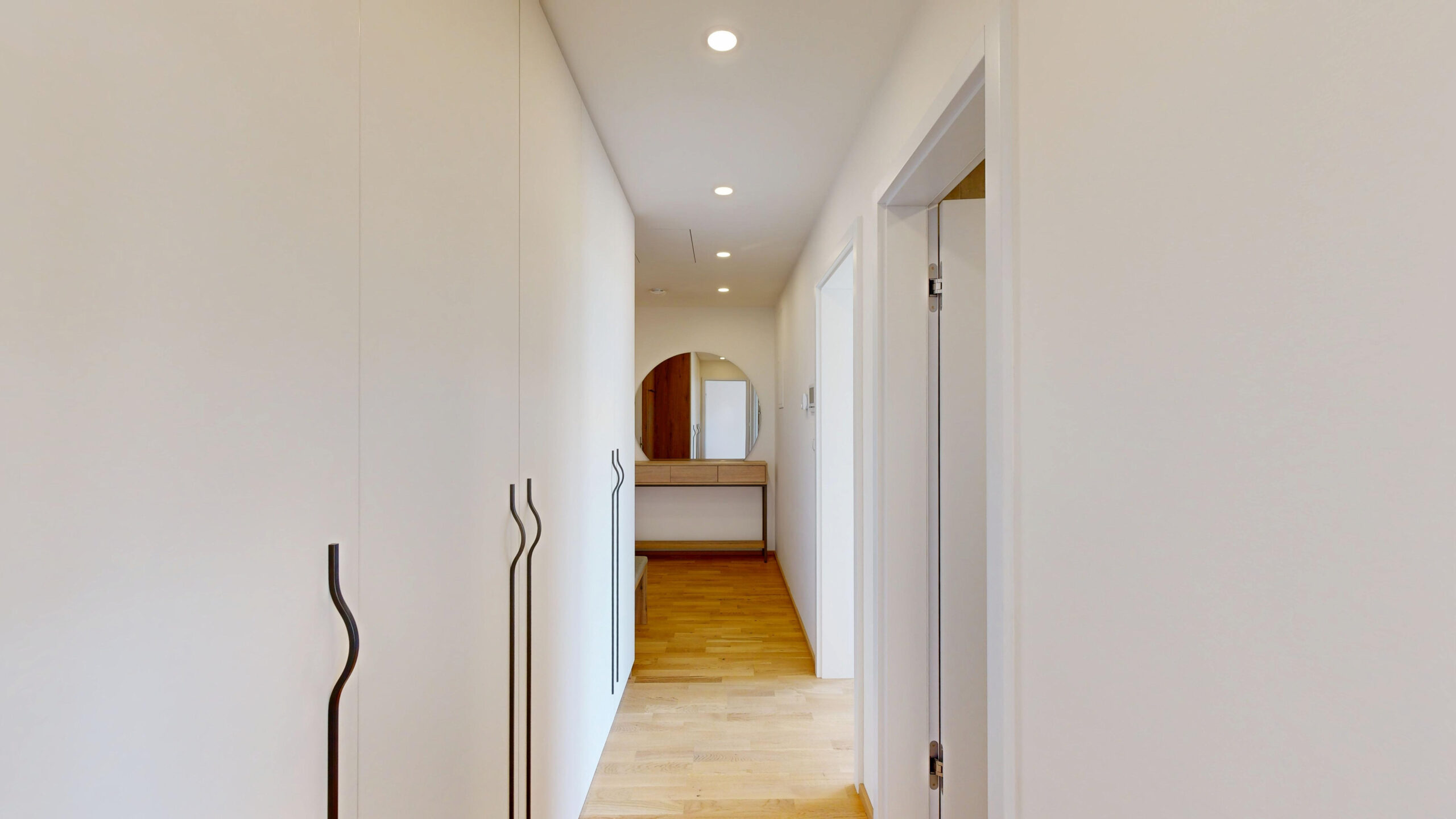 Kuchyňská linka včetně spotřebičů. Lednice s mrazákem, indukční deska, trouba, myčka nádobí, digestoř. Vestavěná skříň na chodbě, komoda, televizní stěna. Kombinovaná pračka se sušičkou.