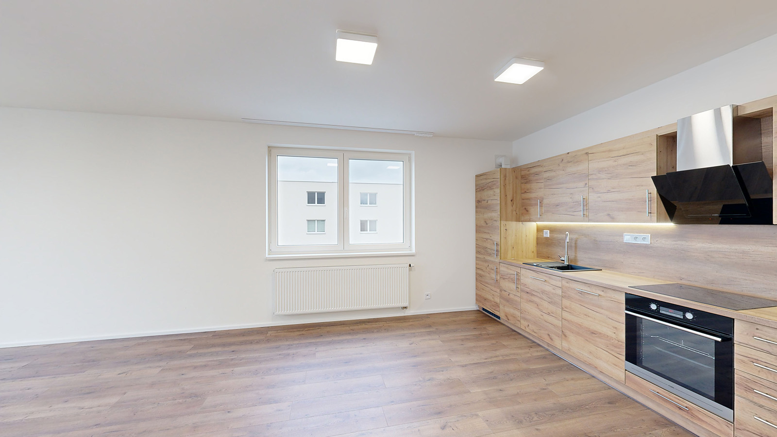 Nabízíme k pronájmu byt 3+kk o rozloze 69,7 m², situovaný v příjemném prostředí novostavby. K bytu náleží rovněž balkon a sklep. Byt se nachází v 4.NP a jeho dispozice zahrnuje: vstupní chodbu s vestavěnou skříní, samostatné WC, velký obývací pokoj s moderně vybaveným kuchyňským koutem (lednice s mrazákem, myčka, trouba, indukční deska, digestoř) a vstupem na balkon, dva pokoje a koupelnu s vanou. Díky bezbariérovému vstupu a výtahu je dům přístupný pro všechny.