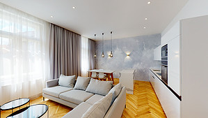 Designově zařízený byt 3+kk k pronájmu v ulici Jaselská si zamilujete. Velkorysý obývací pokoj a 2 ložnice doplňuje balkón. Bydlete v Dejvicích, pražské čtvrti s neopakovatelnou rezidenční atmosférou. Moderní byt 3+kk k pronájmu o velikosti 101,4 m2 se nachází ve 3. podlaží a poskytuje vám maximální komfort. Velkorysou vstupní chodbu, prosluněný obývací pokoj s jídelnou a plně vybaveným kuchyňským koutem (digestoř, varná deska, trouba, myčka značky Siemens) doplňují 2 ložnice, koupelna s vanou a toaletou, samostatná toaleta. Součástí koupelny je kombinovaná pračka se sušičkou. Celý byt k pronájmu je vybavený designovým nábytkem a doplňky, zabudovanými skříněmi na míru, luxusní sanitou Laufen, okna chrání zastínění pro slunci. Pražská čtvrť Dejvice je krásným místem k životu, kde najdete vše, co potřebujete. Restaurace, bistra a bary s domácí atmosférou, mezinárodní školky, školy a elitní gymnázia. Relax vám zajistí věčně zelená Královská obora Stromovka, Letná nebo přírodní park Šárka. Zastávka metra a tramvají Hradčanská je vzdálena od bytu 3 minuty chůze.