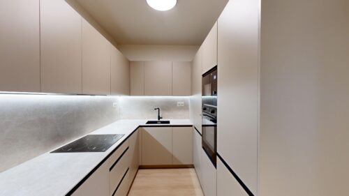 Nabízíme k pronájmu byt o dispozici 3+kk o rozloze 77,7m² s balkonem o rozloze 7 m², situovaný v příjemném prostředí novostavby. Byt se nachází ve 3.NP a jeho dispozice zahrnuje: Vstupní chodbu s vestavěnou skříní a botníkem. Obývací pokoj s vybavenou kuchyní (lednice s mrazákem, myčka, trouba, mikrovlnná trouba, indukční deska, digestoř), televizní stěna. Koupelna s vanou + WC s bidetovou sprškou. Pokoj s vestavěnou skříní. Ložnice s vestavěnou skříní a koupelnou se sprchovým koutem. Díky bezbariérovému vstupu a výtahu je dům přístupný pro všechny.