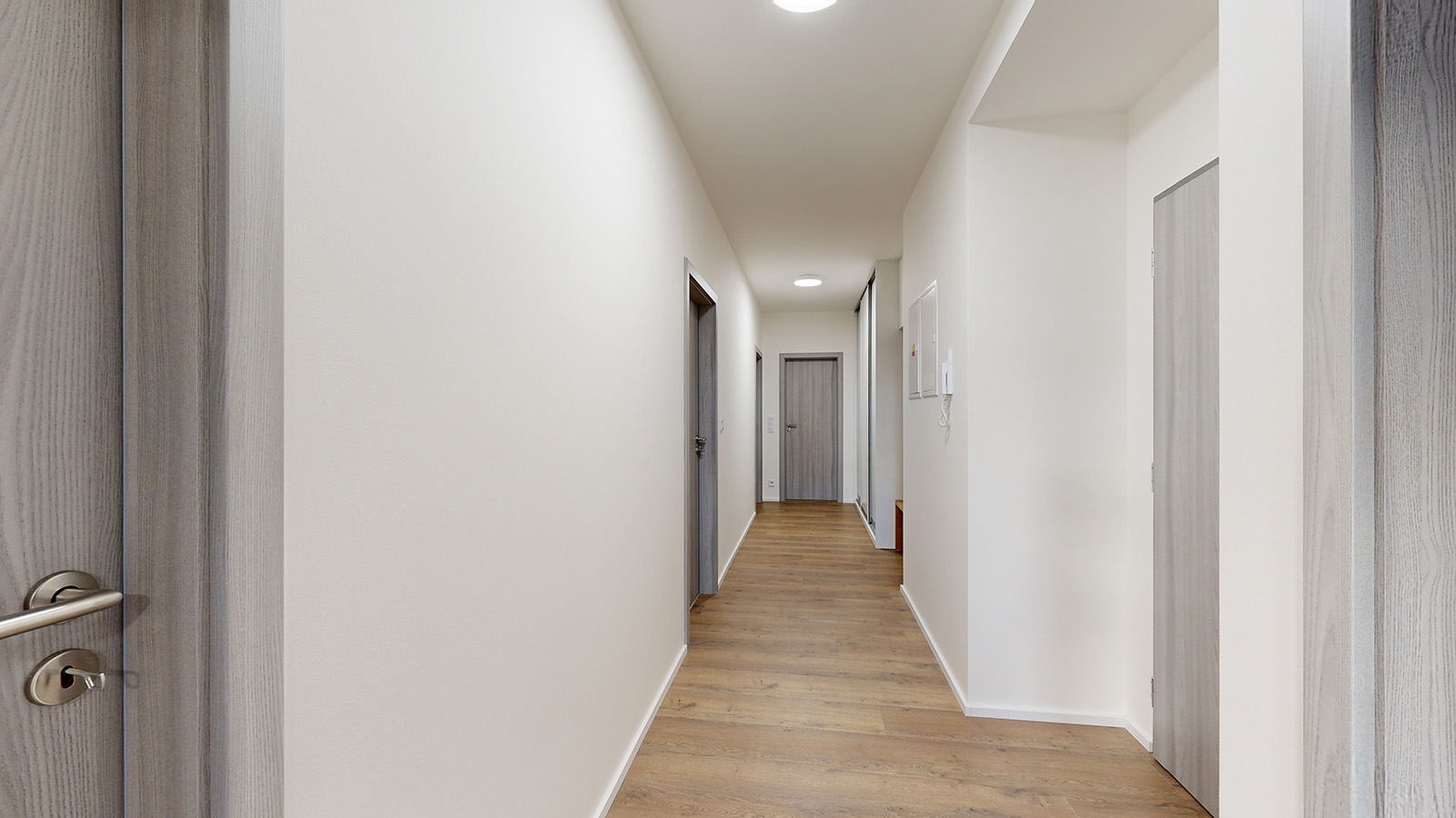 Kuchyňská linka včetně spotřebičů. Lednice s mrazákem, indukční deska, trouba, myčka nádobí, digestoř. Vestavěná šatní skříň na chodbě.