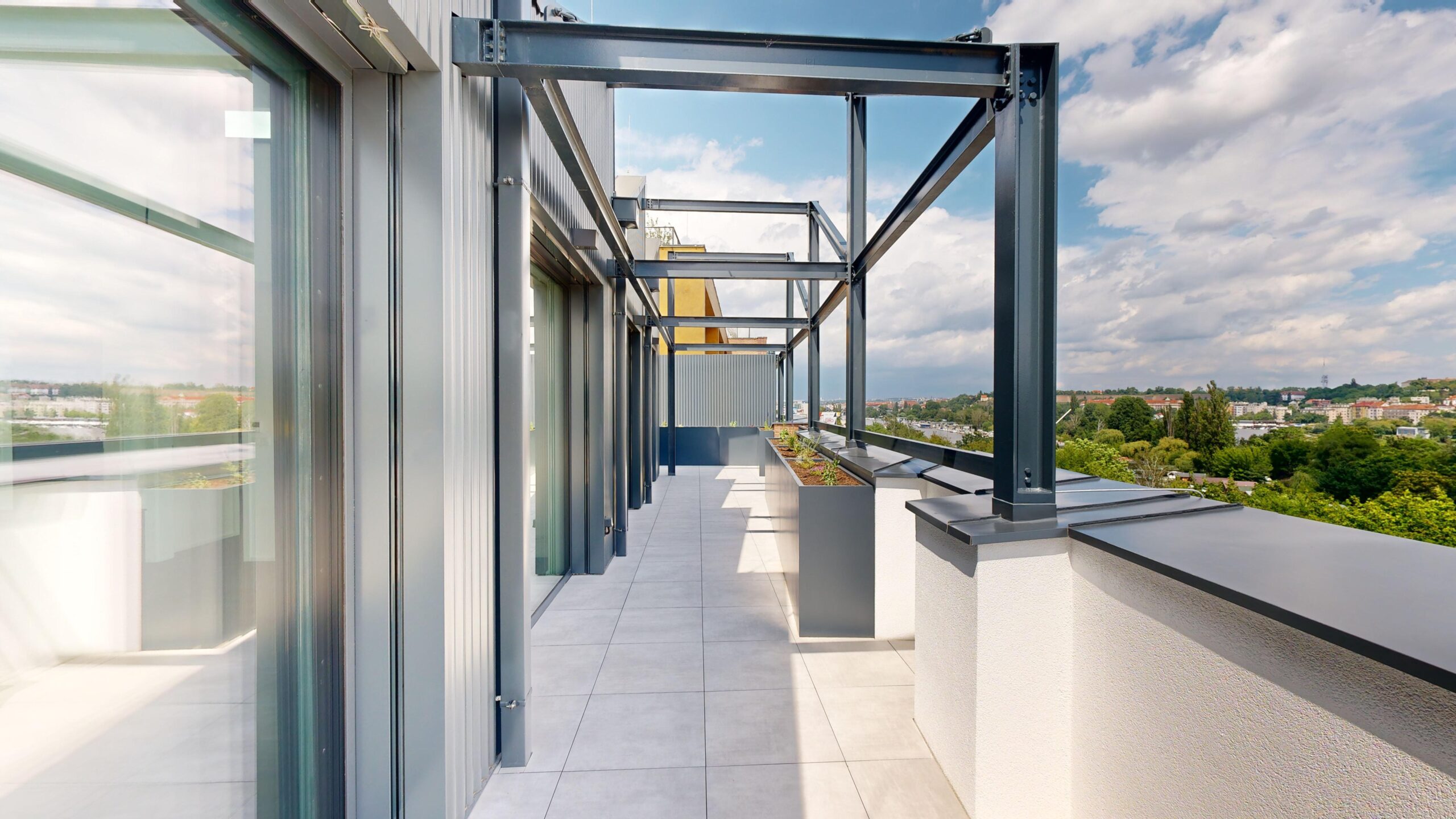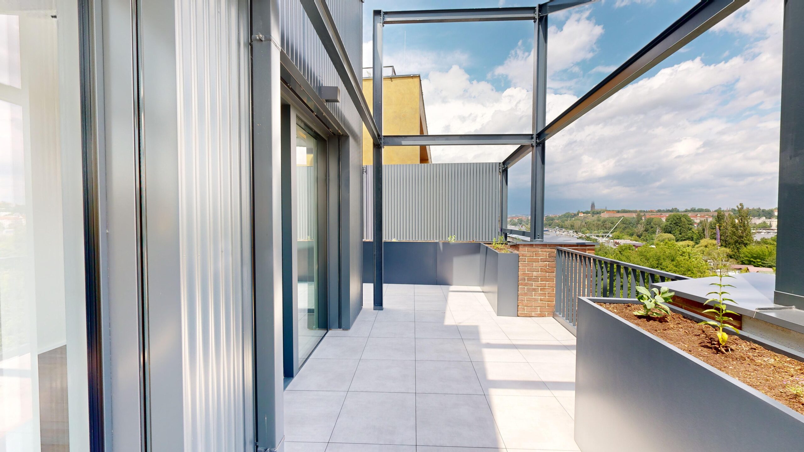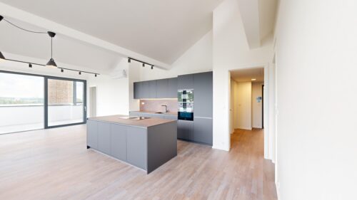 Nabízíme k pronájmu byt o dispozici 4+kk o rozloze 111 m² s terasou o rozloze 100 m², situovaný v příjemném prostředí novostavby. Byt se nachází ve 6.NP a jeho dispozice zahrnuje: Vstupní chodbu s vestavěnou skříní, samostatné WC, prádelna. Obývací pokoj s vybavenou kuchyní (lednice s mrazákem, myčka, trouba, mikrovlnná trouba, indukční deska, digestoř), Ložnice s koupelnou (sprchový kout + wc), 2x Dětský pokoj, koupelna s vanou. Byt je vybaven klimatizací. Internet od T-Mobile - 1 000 Mbit. Díky bezbariérovému vstupu a výtahu je dům přístupný pro všechny.